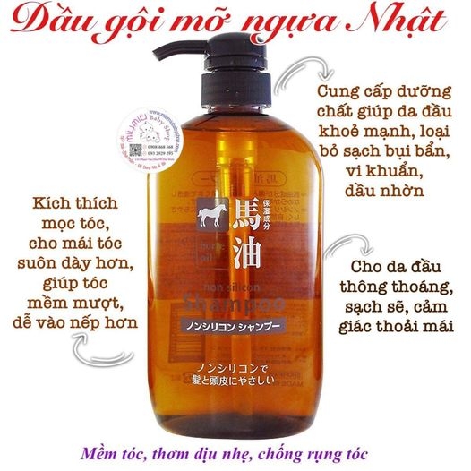 - Dầu gội mỡ ngựa Horse Oil 600ml của Nhật cung cấp ẩm và giữ ẩm tuyệt vời cho tóc, phục hồi mái tóc khô xơ, hư tổn, chẻ ngọn, dưỡng chất giúp tóc mềm mượt, bồng bềnh, vào nếp gọn gàng.