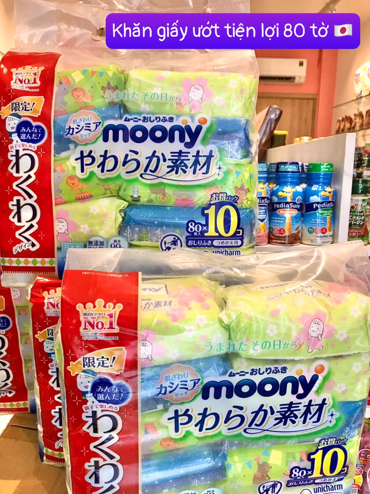 Khăn Giấy Ướt Moony 80 tờ-túi lớn 10 gói 🇯🇵