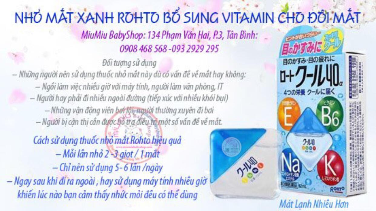 💧👁🇯🇵 Nước nhỏ mắt Rohto Vita 40 có chứa 4 loại vitamin là E, B6, K và Na. Sản phẩm hỗ trợ tốt cho mắt, đặc biệt là những người thường xuyên làm việc với máy tính👩🏻💻🧑🏻💻👨🏻💻. Sản phẩm được sản xuất trực tiếp tại Nhật Bản vì vậy làm đúng theo tiêu chuẩn và công nghệ vì vậy khách hàng có thể yên tâm khi sử dụng sản phẩm này.