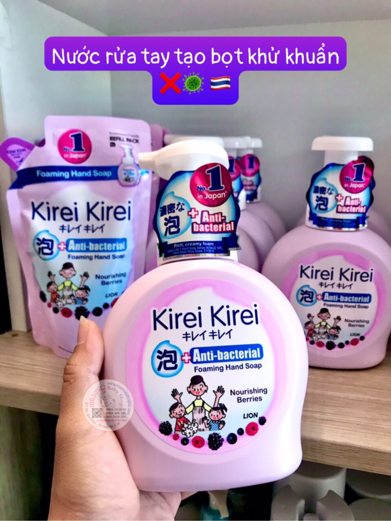 Được chiết xuất từ thảo dược thiên nhiên cùng công thức diệt khuẩn đặc biệt cho bàn tay sạch sẽ cùng hương thơm tươi mát dễ chịu sau mỗi lần sử dụng. Dung dịch rửa tay Kirei Kirei là sản phẩm bán chạy số một tại Nhật Bản, rất thân thiện với cả người lớn và TRẺ EM.