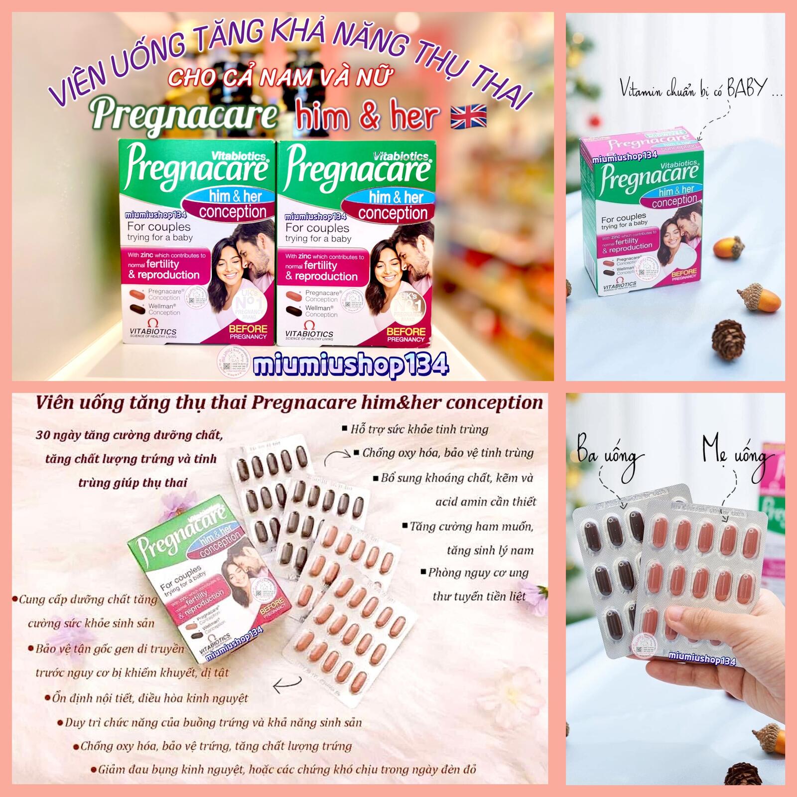+ Ngoài ra, viên uống tăng khả năng thụ thai Pregnacare Him & Her của Anh còn hỗ trợ quá trình rụng trứng. Cũng như ổn định chu kỳ kinh nguyệt, giảm hẳn sự rối loạn, khó chịu.